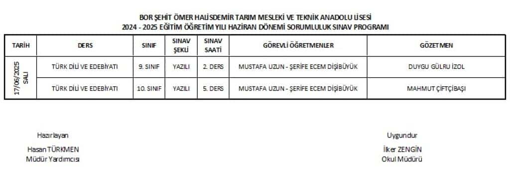 2024-2025 Eğitim Öğretim Yılı Haziran Dönemi Sorumluluk Sınav...